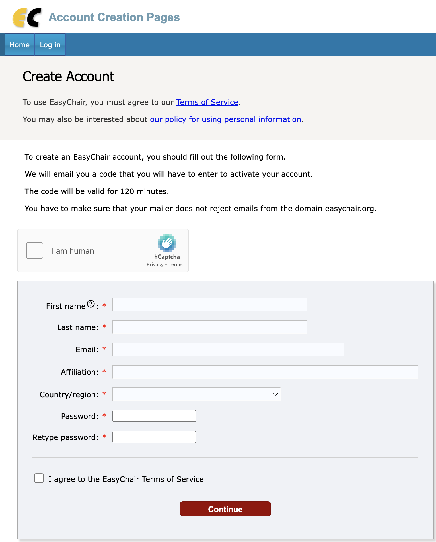 Creating an EasyChair account is relatively straightforward. However, account creation may fail for various reasons. This article describes common problems and their solutions.