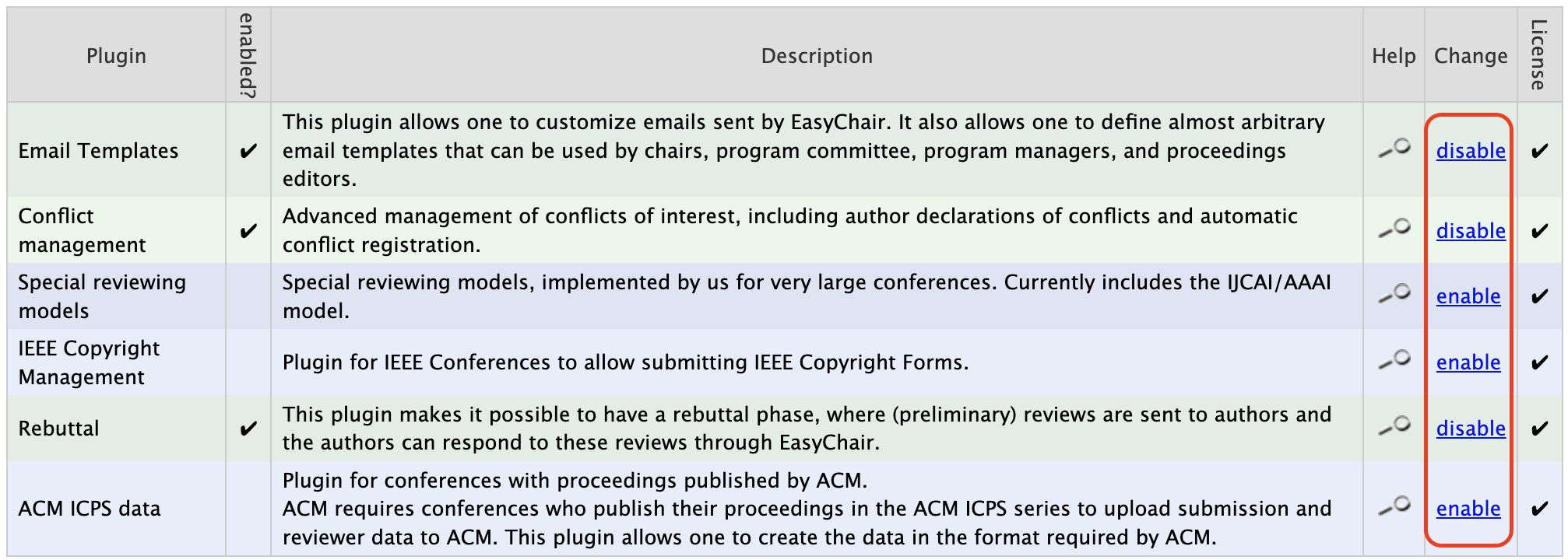 Plugins provide additional configuration options that can be enabled by chairs to further customise a conference. Each plugin is designed to fulfill a specific need.